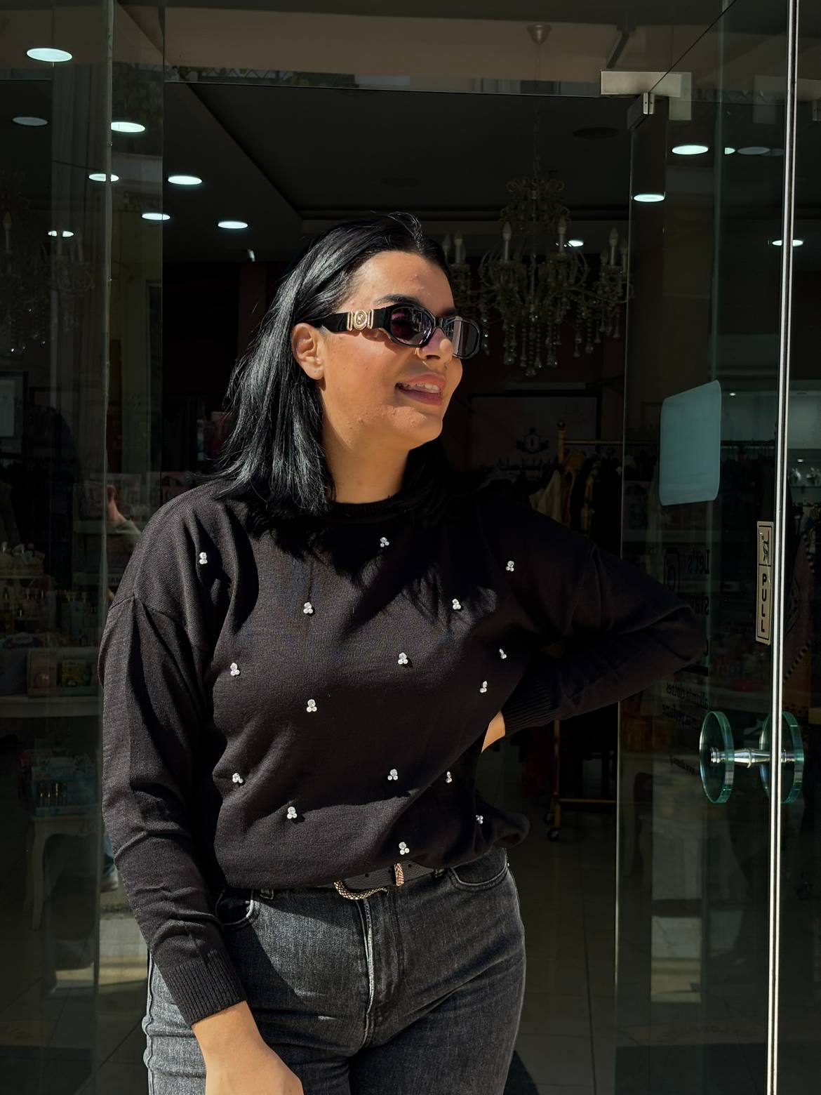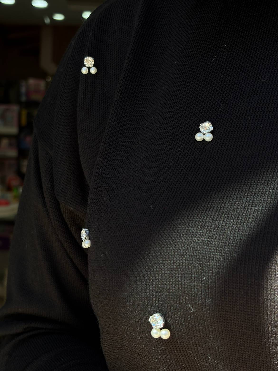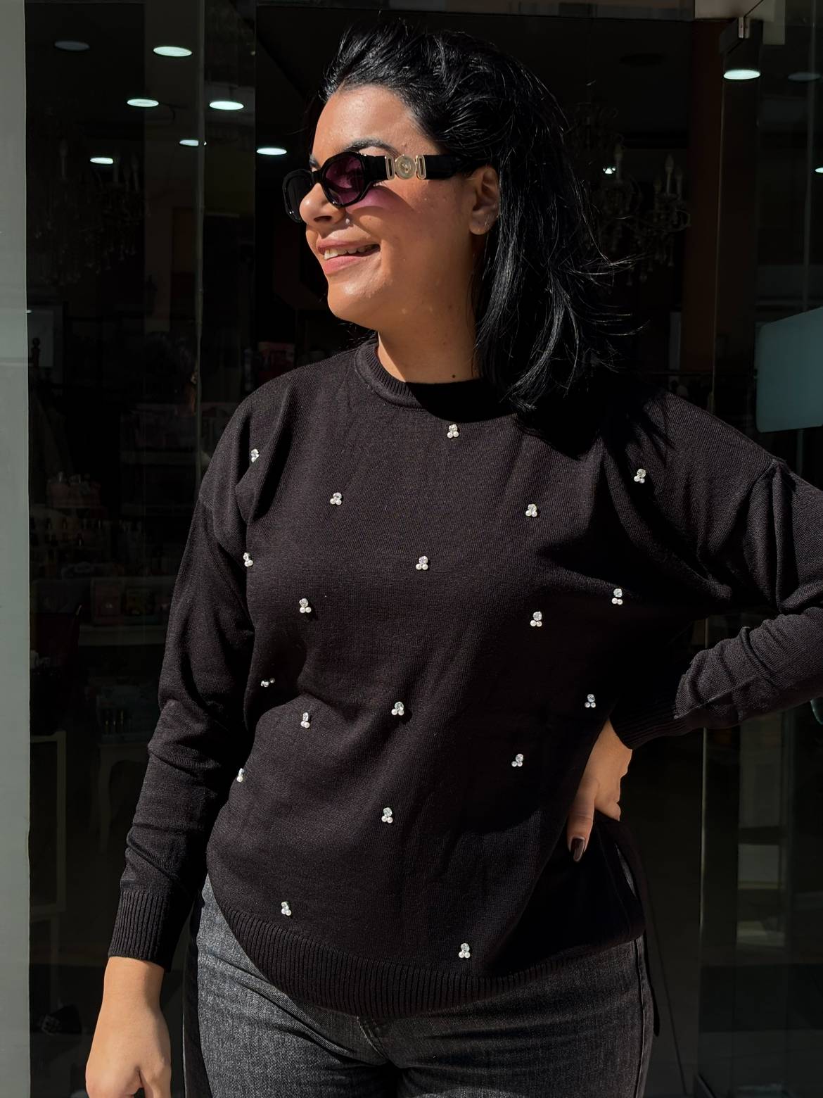 Μπλούζα πλεκτή γκρι μαύρη και στρας καρφωτα