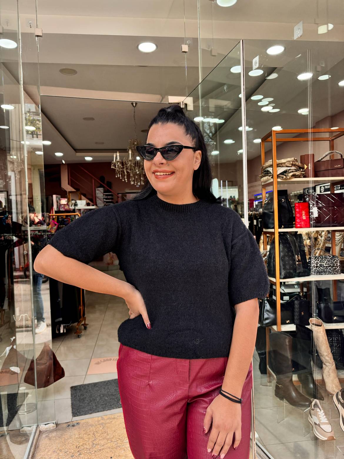 Πλεκτό κοντό μανίκι μαύρο