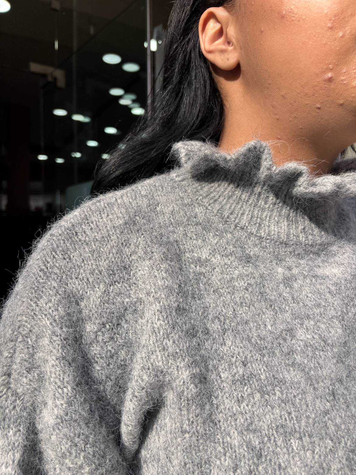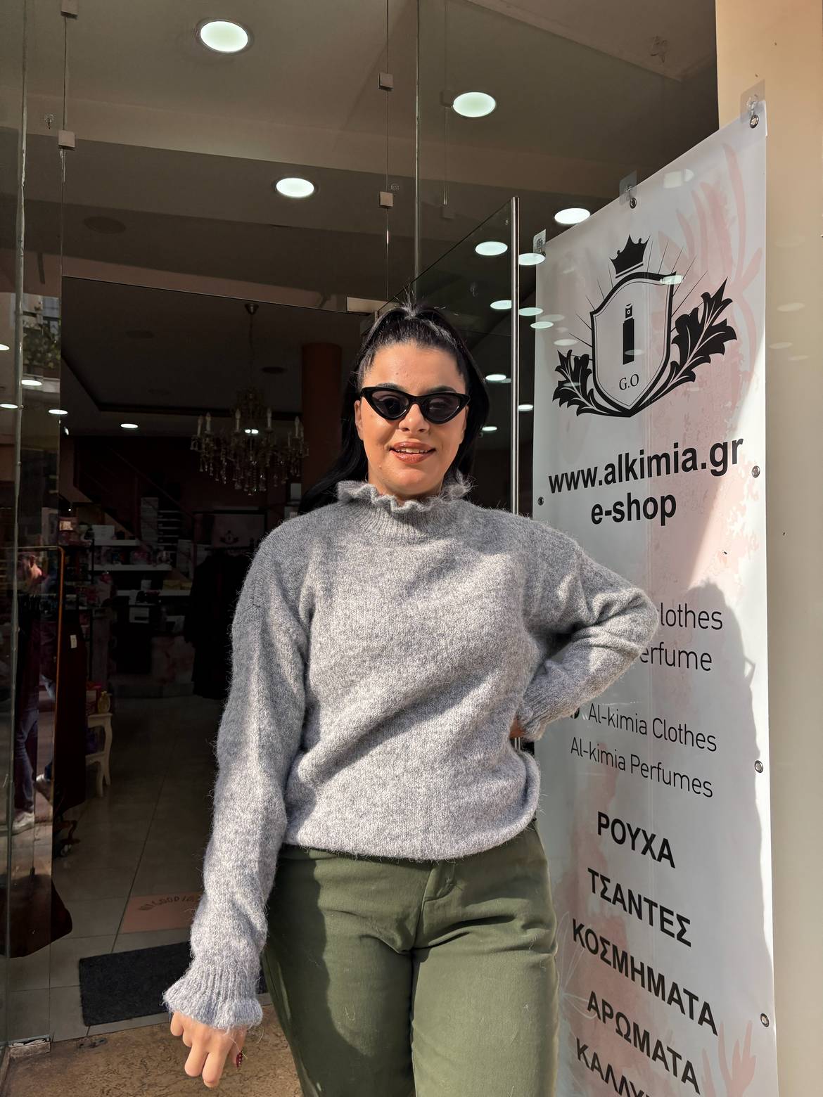Πουλόβερ ζιβάγκο με βολαν στο λαιμό και στα μανίκια