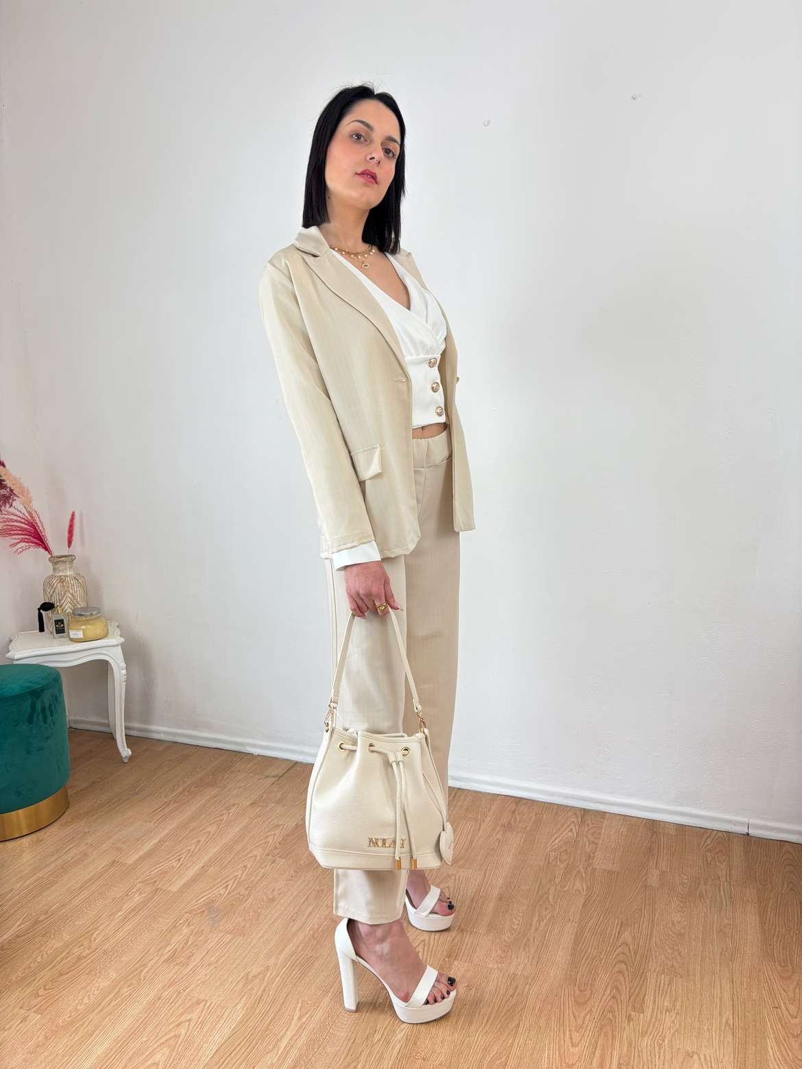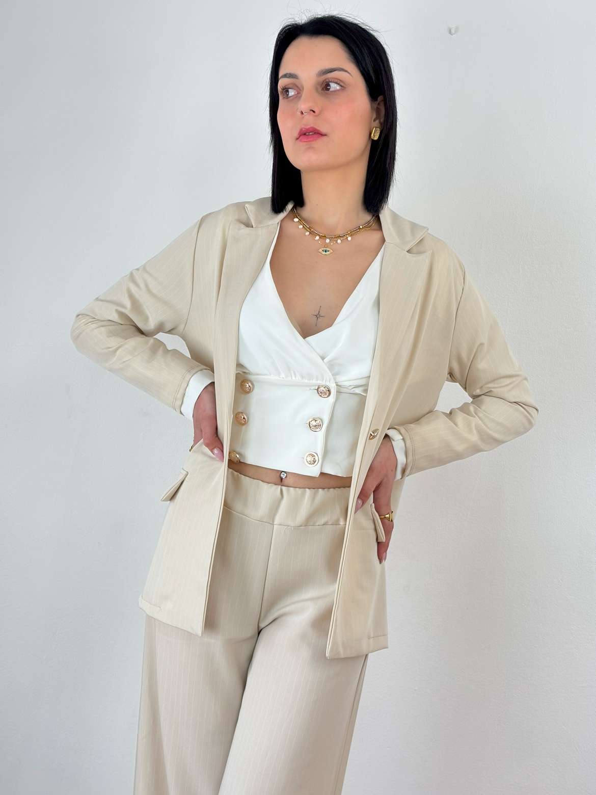 - Το σακάκι κλείνει με ένα κουμπί