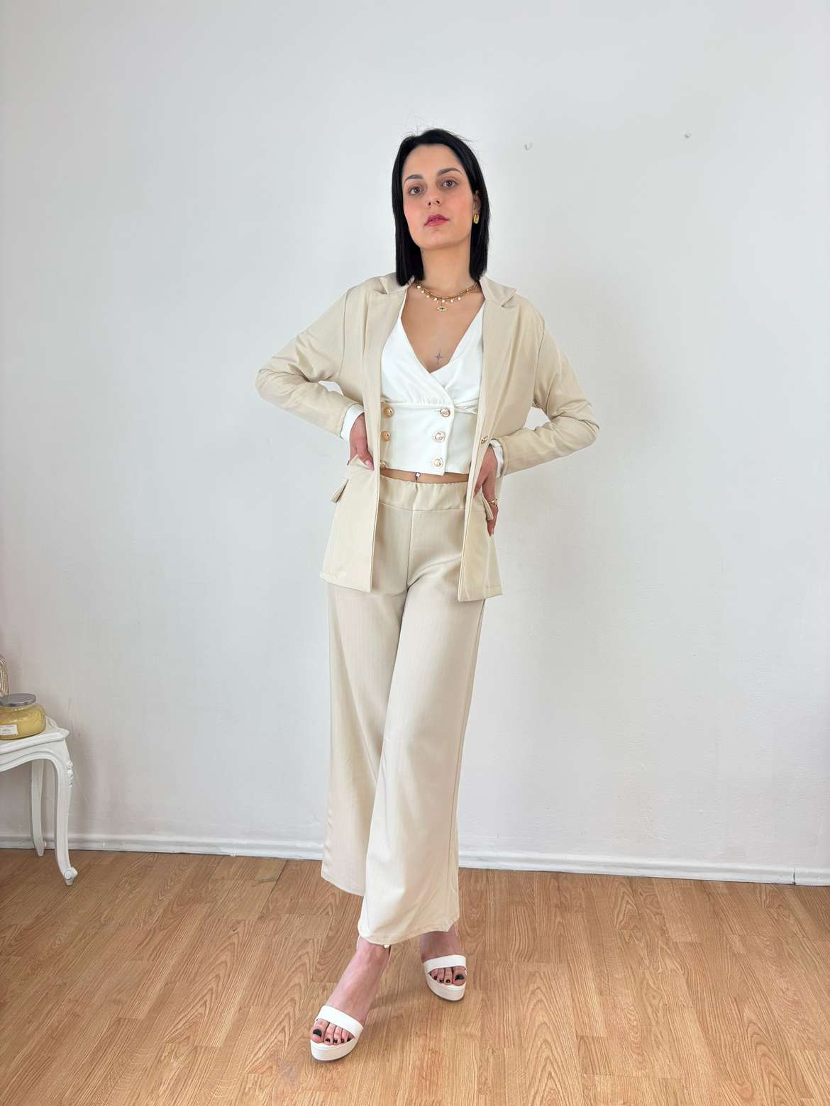Σετ ριγέ κουστούμι Beige