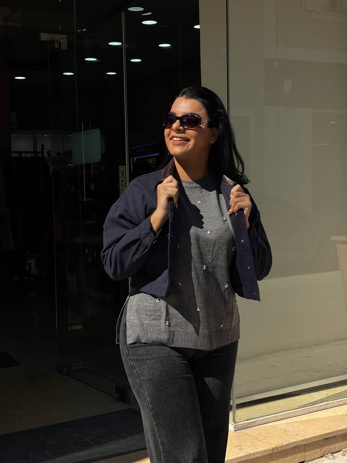 Μπλούζα πλεκτή γκρι πέρλες